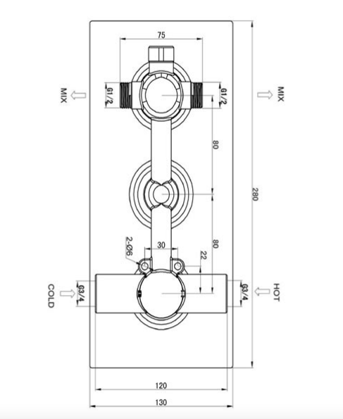 Square thermostatic concealed 2 outlet shower valve, LP 0.2 |
