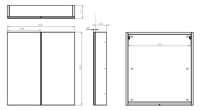 600(w) x 650(h) x 115(d) mm