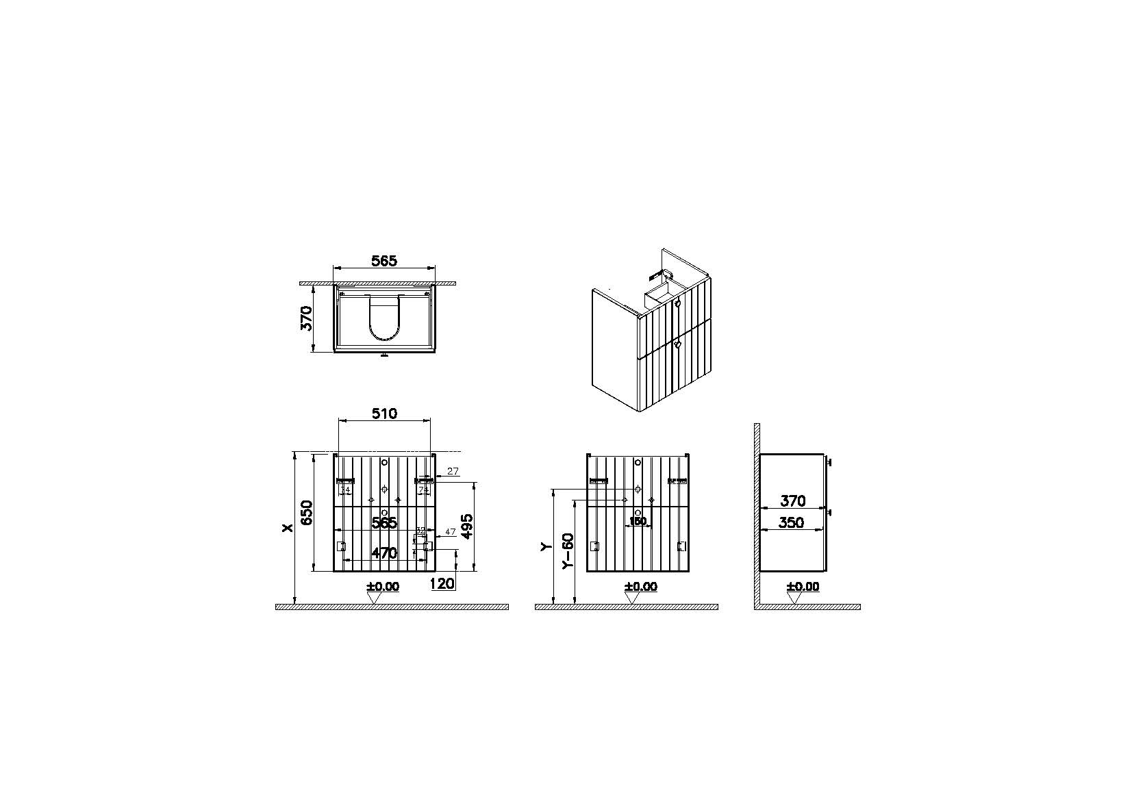 | Description | Root furniture is a complete bathroom solution offering washbasin units, side units, tall storage units in three designs and taps in two complementary designs; round and square. Compatible with 7035B003-0001 and 7790B003-0001 washbasins. Handles available in chrome, matt white and matt black. The VitrA Design Team presents a Matt White bathroom cabinet with MDF finish on the body and thermoform finish on the front. The cabinet has a width of 60cm, depth of 38cm, black button handle grip and does not include a washbasin. |