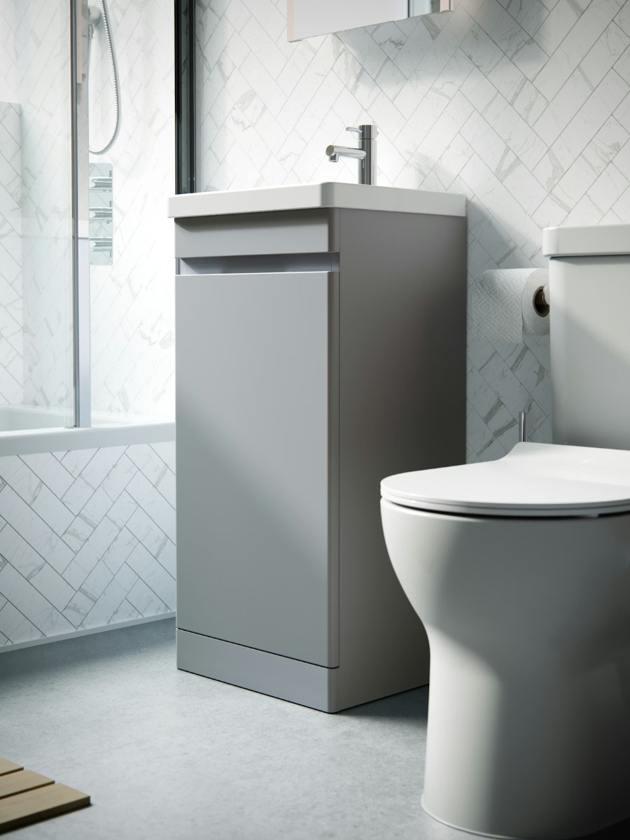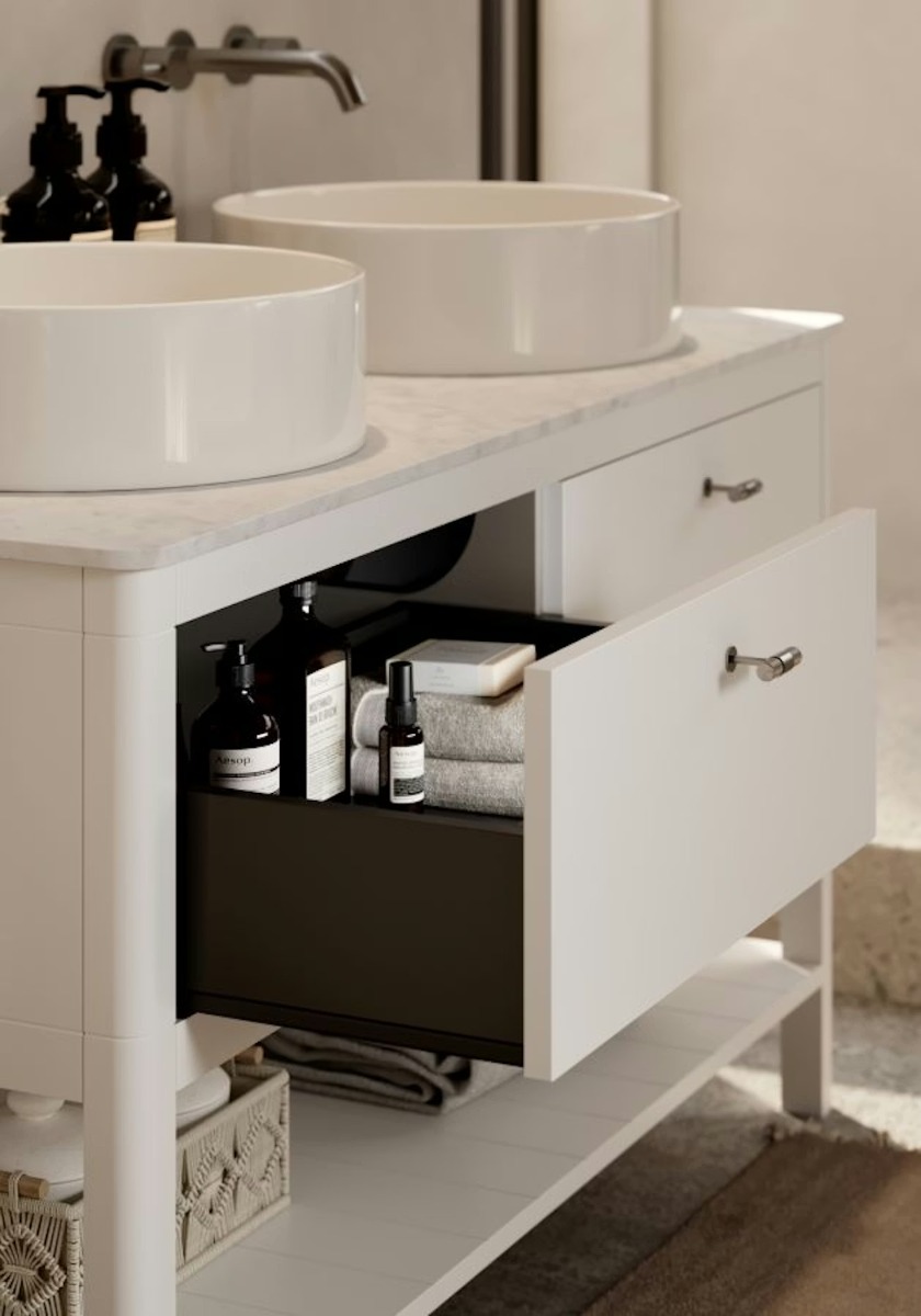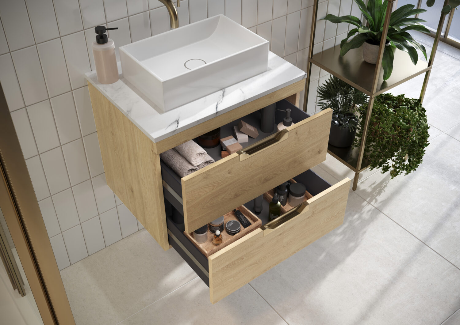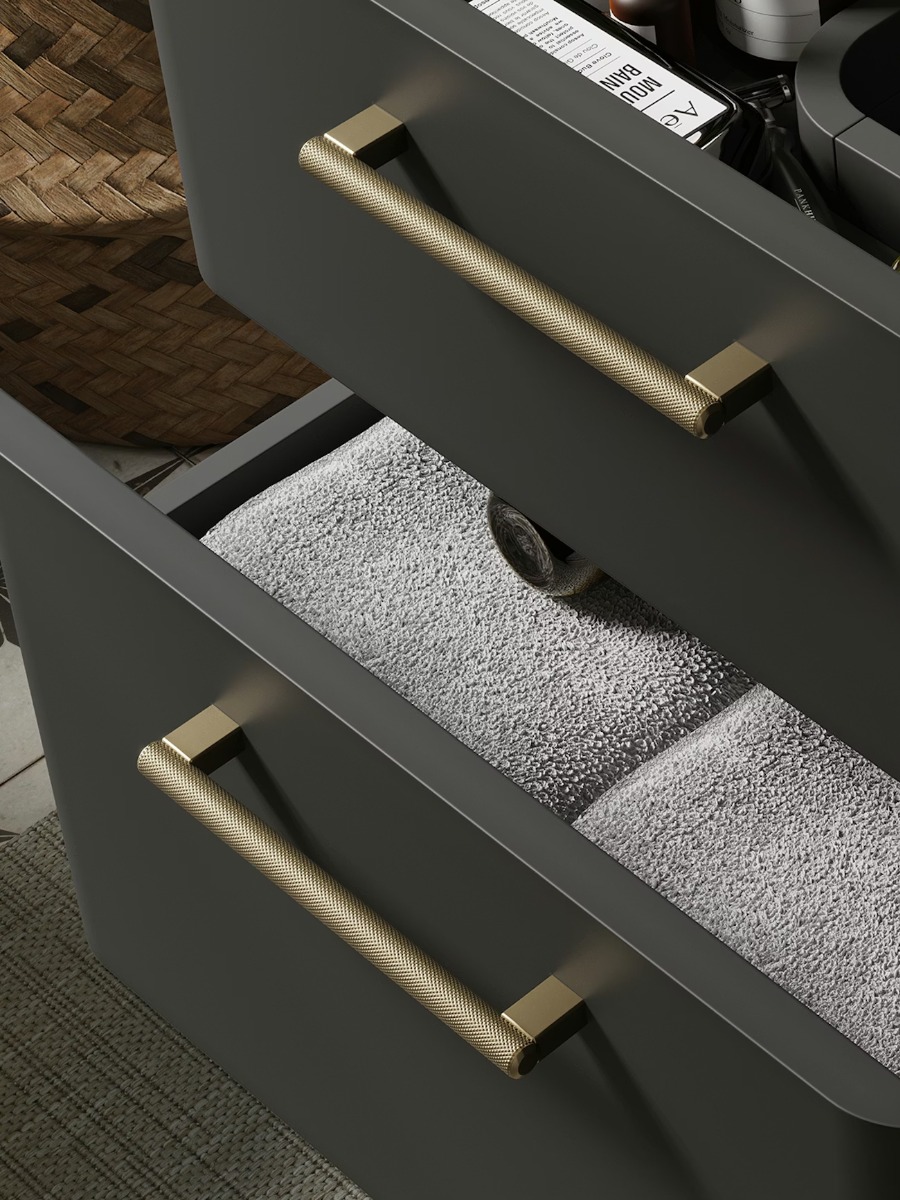 | Description | Offering the most storage within the Compass range, the 600 double drawer unit is a sleek addition to any bathroom. The Compass range features compact 450mm & 500mm units, which offer the perfect solution of basin and storage ideally suited in cloakrooms and smaller bathrooms. For those who want extra storage space, there’s a choice of 600mm and 800mm units, available in either freestanding or wall mounted styles. There is also a very practical 600mm double drawer freestanding unit with plentiful storage. Compass features a deep ceramic basin giving generous wash space. Fully extending drawer runners make it easy to access to all your bits & bobs. Features soft close functionality for quiet and controlled closure, along with stylish chrome handles. |