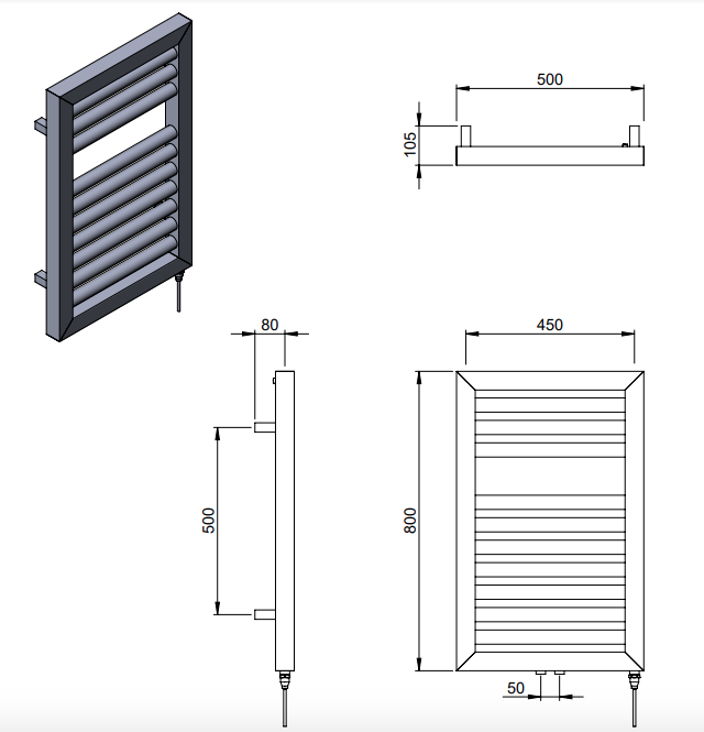 | Description | Contrast | wall mounted MD079Contrasting design with square mitred outer tubes and round cross bars. The Contrast is a hybrid product with 50mm centres with the option for an electric element to go up the vertical square tube without the need for a conversion tee for dual fuel models. |