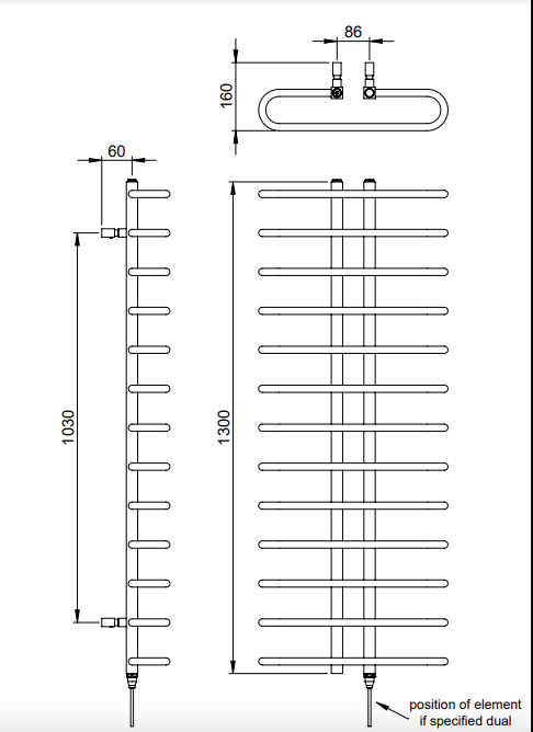 | Description | Draco | wall mounted DR015The Draco’s equally spaced hooped tubes form an exquisite architectural shape. The perfect symmetry with its centralised valves brings an aesthetically pleasing profile to your room. |