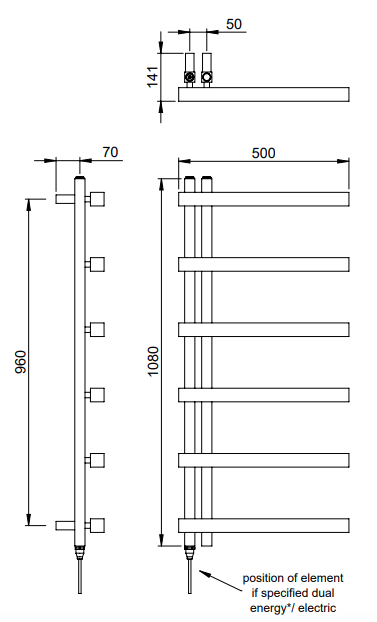 | Description | Keys II | wall mounted CN030This design uses high quality square tubing for a contemporary look. This towel rail can be wall mounted either left or right handed and the open ended rail allows towels to be hung effortlessly from both sides providing you with flexible convenience to suit your room. |