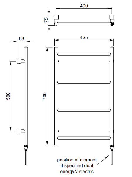 | Description | Pure | wall mounted MD037Manufactured from high quality brass tube, the MD037 is a simple and pure addition to your bathroom. Large spacing between bars creates a luxurious illusion of vast expanse a perfect accompaniment to your space. |