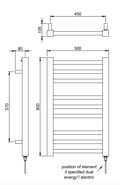| Description | Quadrate | wall mounted MD074With a distinctive, contemporary form this towel rail is the essence of modern sophistication. The thick square tubes provide a sharp and crisp profile with an ambience of luxurious allure. |