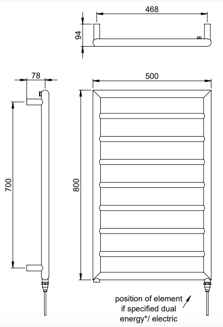 | Description | Smooth | wall mounted CN035Clean lines and mitred corner joints boast a unique and robust appeal. This towel rail provides multiple crossbars for an abundance of towel hanging capacity and the chunky framework beautifully borders the more delicate central bars. |