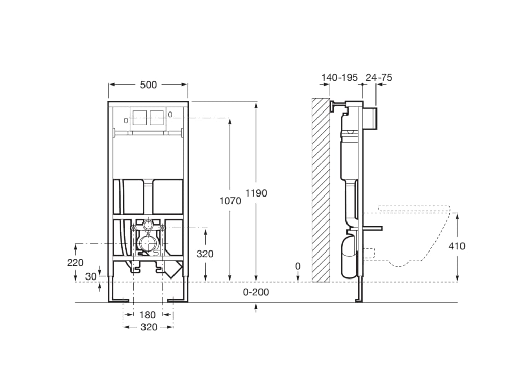 | Description | TECHNICAL SPECIFICATIONSDynamic pressure range: 0,1 - 10 Bar Elbow connection: DN100 (110 mm), DN90 (90 mm) Flushing type preset: Dual flush 3/6 litres Minimum fixation depth (mm): 140 Operating panel position: Frontal Suitable for: Wall-hung WC Tank depth (mm): 125 Water inlet position: Back, Top |