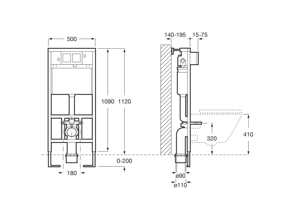 | Description | TECHNICAL SPECIFICATIONSDynamic pressure range: 0,1 - 10 Bar Elbow connection: DN100 (110 mm), DN90 (90 mm) Flushing type preset: Dual flush 3/6 litres Minimum fixation depth (mm): 140 Operating panel position: Frontal Suitable for: Wall-hung WC Tank depth (mm): 125 Water inlet position: Back, Top |