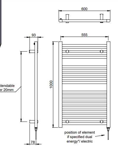 | Description | Focus | wall mounted MD001It’s all in the detail! Capped off ends with a hidden air vent create a smooth and modern finish on this towel warmer. Adjustable brackets through the crossbars also offer freedom and ease of installation. Offering a copious amount of rails for optimum efficiency, this contemporary rail is a modern example of proficient design. |