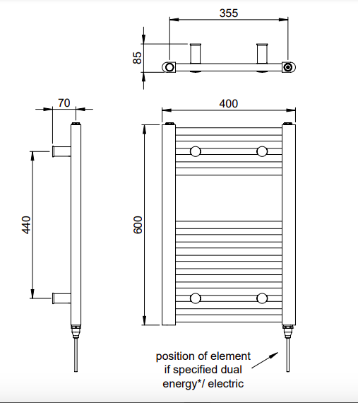 Ladder Rails Axis Dual Energy Only - Chrome 600x400 is available to buy in increments of 1