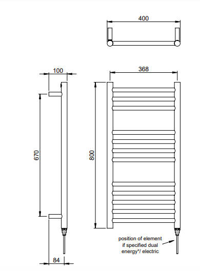 | Description | Chube | wall mounted MD035Crafted from high quality stainless steel, this towel warmer allows optimum towel hanging space with a simplistic elegance. The round tubes throughout and rear air vent keep the aesthetically pleasing lines as a priority. This product can be used as either a hydronic or fully electric model. |