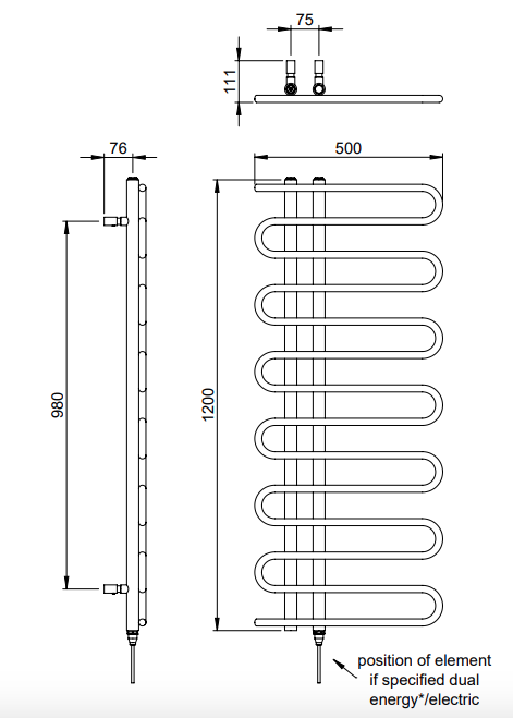 A distinctive and delicate design that enables you to slide towels on from the side for ease of use...This model can be mounted either side so you have the flexibility for it to work for your space. The gentle curves on continuous tube add a mesmerising and unique quality to your bathroom