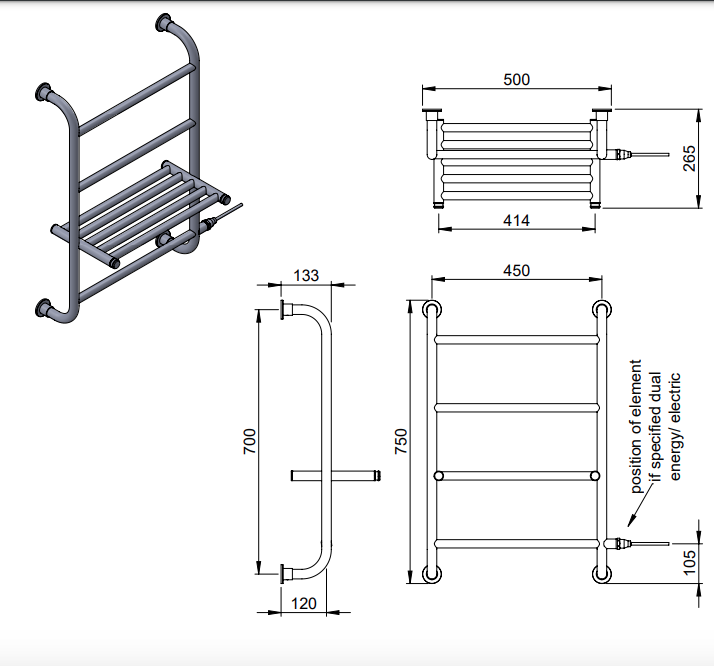 Contemporary Ieri BR Towel Rail Dual Energy-Chrome 750x500 is available to buy in increments of 1