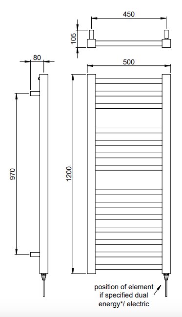 | Description | Quadrate | wall mounted MD074With a distinctive, contemporary form this towel rail is the essence of modern sophistication. The thick square tubes provide a sharp and crisp profile with an ambience of luxurious allure. |