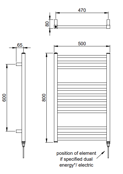 Contemporary Rubik Towel Rail Dual Energy Only - Brushed Stainless Steel 800x500