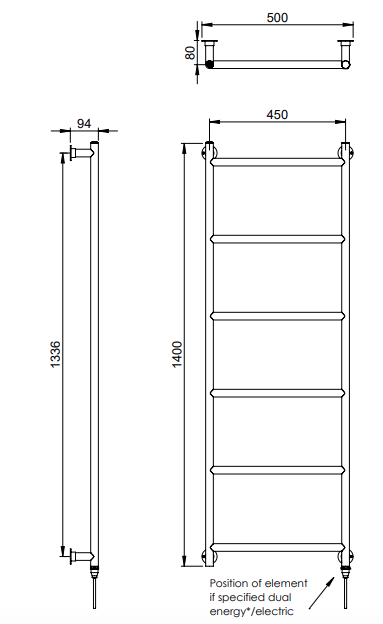Contemporary Vivid II Towel Rail Heating-Chrome 1400x500 is available to buy in increments of 1