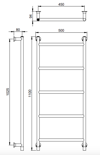 Contemporary Vivid Integral valve Towel Rail Heating-Chrome 1100x500