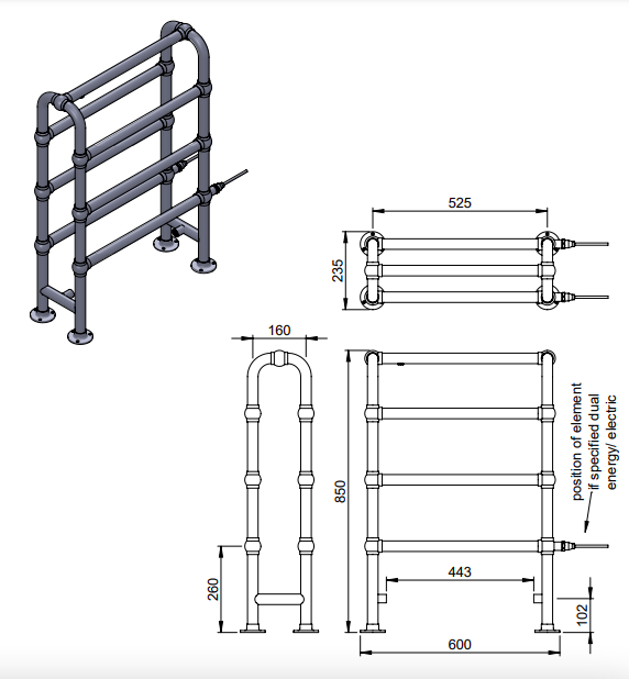 | Description | Arcadia MS | floor mounted LG017Isn’t it nice to stand out from the crowd? Well, by introducing this towel horse to your bathroom, blending into the background is no longer an option! This striking design will not only serve you with cosy warmth and an abundance of towel hanging capacity, it will also add an air of antiquity to its surroundings…No need to look back through rose tinted specs when you have the belle of the ball right in your own home! |