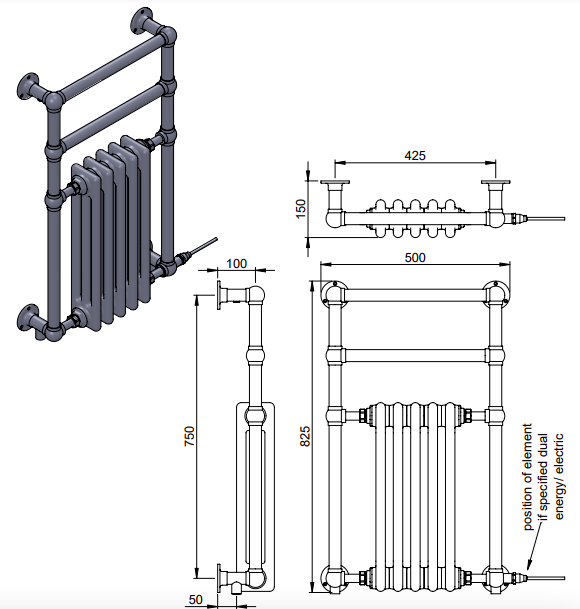 A sophisticated look for any traditional setting...This towel warmer/ radiator combination creates an element of superiority presenting the contrasting metallic frame alongside the decorative columns of the inset radiator. The frame is handcrafted from a high quality brass tube with giving you a wide range of flexibility in terms of finishes, whilst the column radiator can be painted in a vast array of colours.
