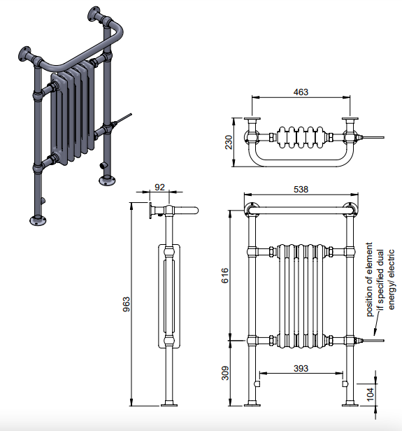 | Description | Regency MS | floor and wall mounted LG004-MSA touch of class…This traditional towel warmer radiator will not only provide a high heat output and elegant towel hanging space but will add an element of luxury to any bathroom or wet room. Why compromise on style when you can choose both function and flare. |