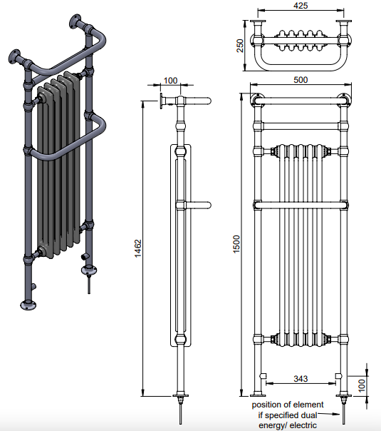 Traditional Regency Tall Fw - Br Heating Only - Chrome 1500x500