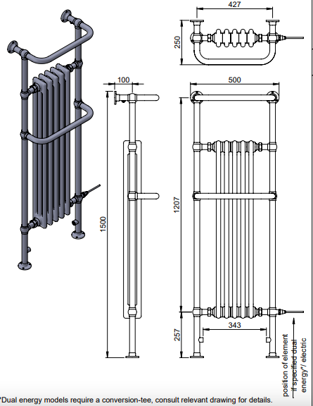 | Description | Regency Tall - MS | floor and wall mounted LG013This traditional towel warmer radiator will not only provide a high heat output and elegant towel hanging space but will add an element of luxury to any bathroom or wet room. |