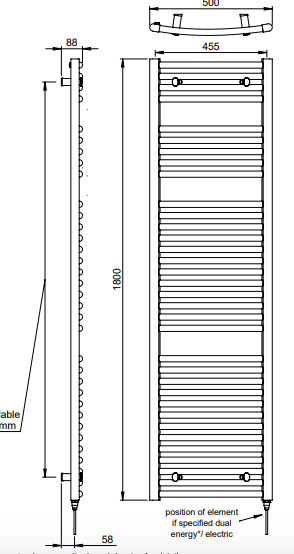 | Description | Chorus | wall mounted MD002It’s all in the detail! Capped off ends with a hidden air vent create a smooth and modern finish on this towel warmer. Adjustable brackets through the crossbars also offer freedom and ease of installation. Offering a copious amount of rails for optimum efficiency, this contemporary rail is a modern example of proficient design… the curved version of our staple MD001. |