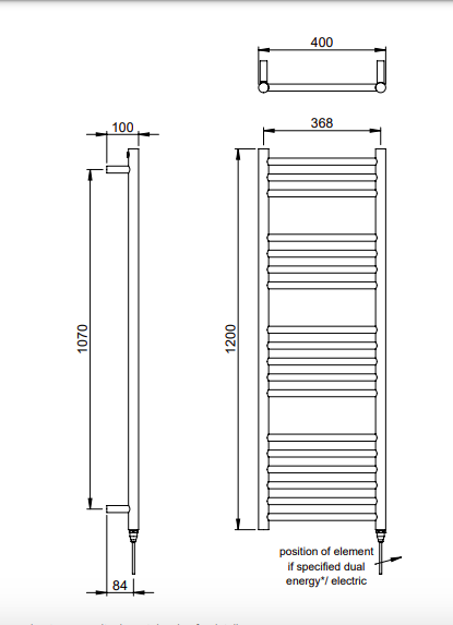 | Description | Chube | wall mounted MD035Crafted from high quality stainless steel, this towel warmer allows optimum towel hanging space with a simplistic elegance. The round tubes throughout and rear air vent keep the aesthetically pleasing lines as a priority. This product can be used as either a hydronic or fully electric model. |