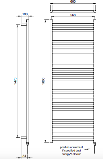 | Description | Chube | wall mounted MD035Crafted from high quality stainless steel, this towel warmer allows optimum towel hanging space with a simplistic elegance. The round tubes throughout and rear air vent keep the aesthetically pleasing lines as a priority. This product can be used as either a hydronic or fully electric model. |