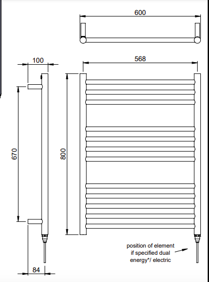 | Description | Chube | wall mounted MD035Crafted from high quality stainless steel, this towel warmer allows optimum towel hanging space with a simplistic elegance. The round tubes throughout and rear air vent keep the aesthetically pleasing lines as a priority. This product can be used as either a hydronic or fully electric model. |