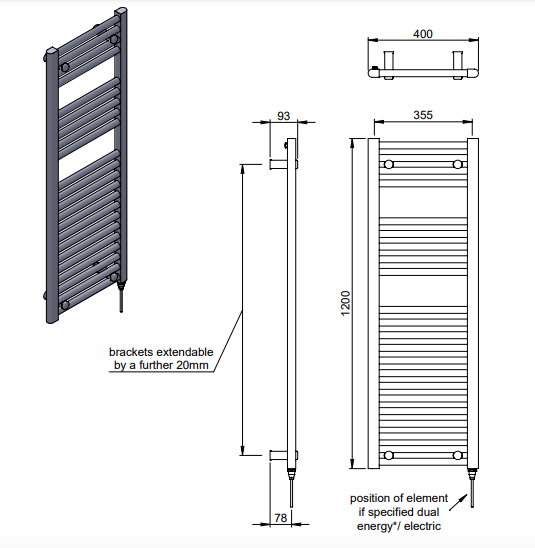 | Description | Focus | wall mounted MD001It’s all in the detail! Capped off ends with a hidden air vent create a smooth and modern finish on this towel warmer. Adjustable brackets through the crossbars also offer freedom and ease of installation. Offering a copious amount of rails for optimum efficiency, this contemporary rail is a modern example of proficient design. |