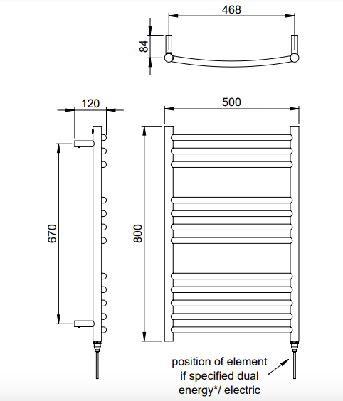 | Description | Chube | wall mounted MD035Crafted from high quality stainless steel, this towel warmer allows optimum towel hanging space with a simplistic elegance. The round tubes throughout and rear air vent keep the aesthetically pleasing lines as a priority. This product can be used as either a hydronic or fully electric model. |
