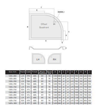 Mx Elements 900x760 O/s Quadrant Right Hand is available to buy in increments of 1