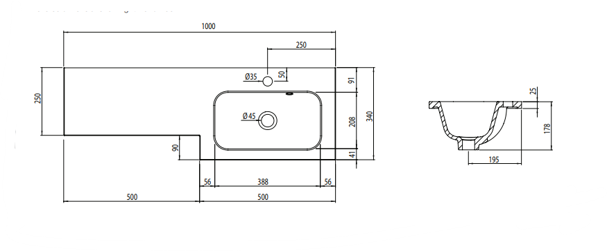 | Description | Offering a sleek, streamlined finish, the Nexus isocast worktop basin features a generous wash space and is available in both left and right configurations for the perfect fit. Nexus 1000 right hand basin is suitable with a Nexus 500mm Basin Unit and Nexus 500mm Back to Wall Unit . 1020mm (l) x 190mm (w) x 360mm (h) |