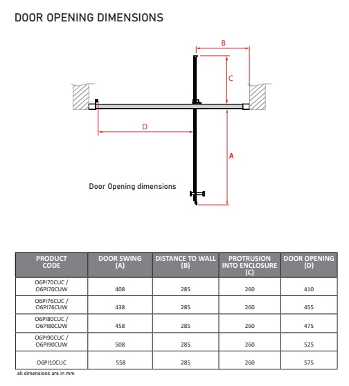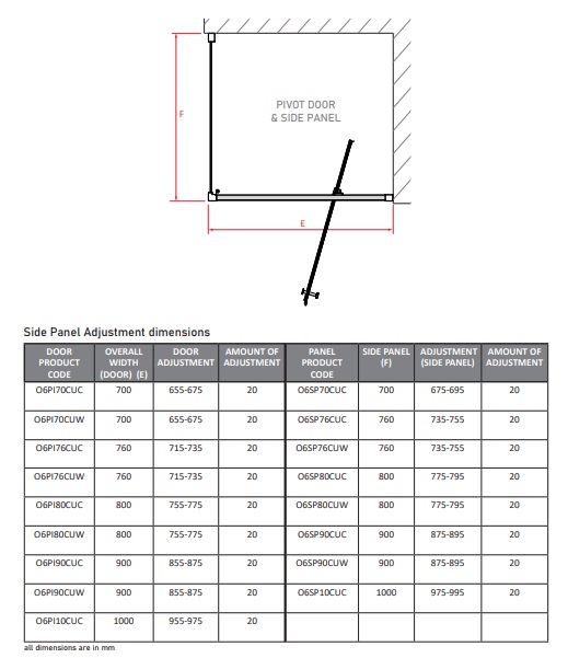 | Description | A contemporary semi-frameless pivot door design, which is ideal for smaller spaces. Featuring smooth rise and fall hinges, ultra-clear seals and stay clean glass as standard. Minimal semi-frameless design, 1900mm high, 20mm adjustment per profile, Ultra-clear soft seals with UV resistant treatment applied to reduce discolouration over time, Level and Lock™ Screwless adjustment, CE tested and compliant to BS EN 14428, Fully reversible design, Seamless profiles and fixings for a minimal look and easy cleaning, Pre-assembled for Quick Installation Please note: Installation of a Side Panel with an Optima 6 door will reduce the door adjustment size by 20 mm. See door technical data sheet for full details. |