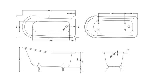 | Description | All Bayswater baths are manufactured from double skinned reinforced acrylic and come in a gloss white finish. Freestanding models are available with a choice of three decorative foot designs. Please note that Bath feet are sold seperately. |