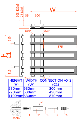 Material : Steel Guarantee : 5 years Colors : Chrome C:Central heating