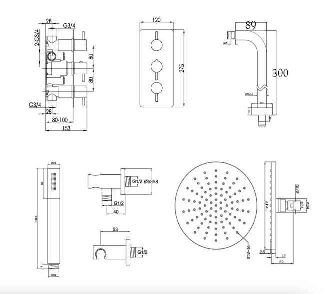 | Description | 15690A – Florentine thermostatic shower valve 2 outlets Specification