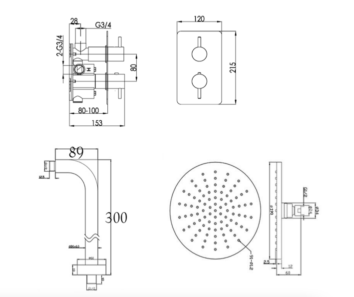 | Description | 15651A – Thermostatic concealed 1 outlet shower valve non return valves 9901 – Boker round overhead shower 190mm C021005 – Chill round shower arm 300mm |