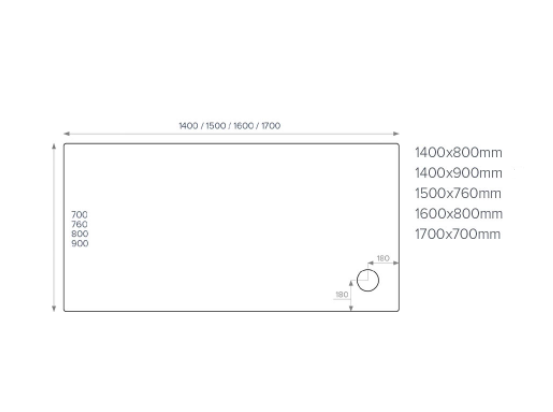 Just Trays MERLIN Rectangular Shower Tray 1700x700mm Flat Top-White