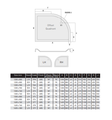 Mx Elements 1000x800 O/s Quadrant Right Hand is available to buy in increments of 1