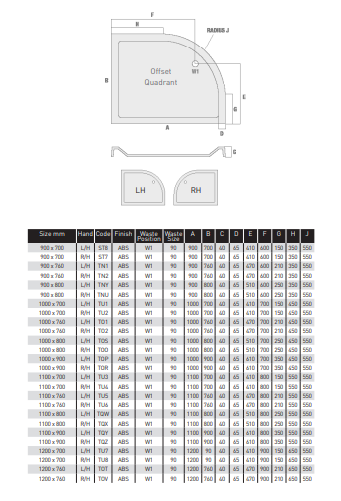 Mx Elements 1200x760 O/s Quadrant Right Hand is available to buy in increments of 1
