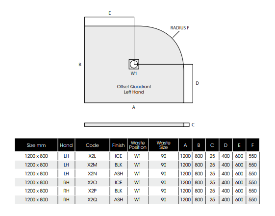 Mx Mineral 1200x800 O/s Quadrant Left Hand Slate Ice White