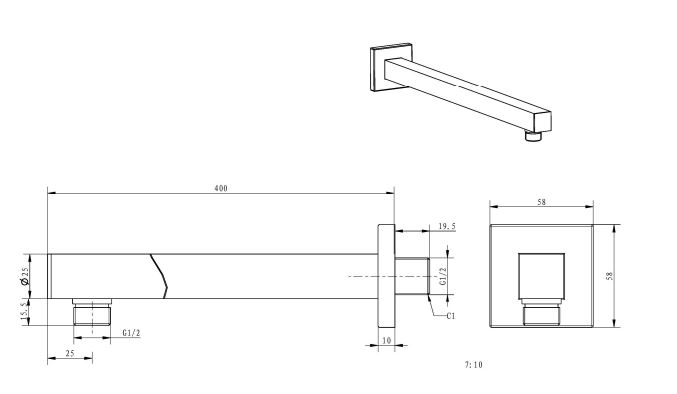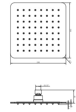 Sleek square overhead showerhead and arm
