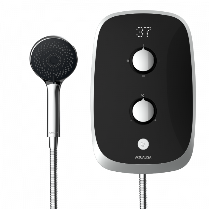 Digital temperature display and control dial; Satin silver trim; Illuminated push power button and Low water pressure indicator; 3 power settings; Stainless steel hose; Universal multifit: 8 water & electric entry points; 105mm Flow Handset with 3 spray settings, rub clean nozzles and a push button slider; Over temperature protection and phased shut down safety features; Retrofitable