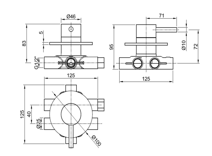 JTP Inox Stainless Steel 4 Way Diverter - IX287
