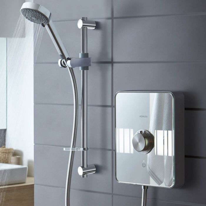 | Description | Illuminate your senses and make the ultimate style statement with Aqualisa Lumi. Let reflection and light brighten your day with the luxurious mirrored glass fascia. The sensory start/stop button of Lumi Electric makes this sleek design stand out, and the unique 'Over Temperature Protection' system ensures safe family showering. Available in a stunning Chrome finish, this 9.5kW model has redefined electric showers forever. |