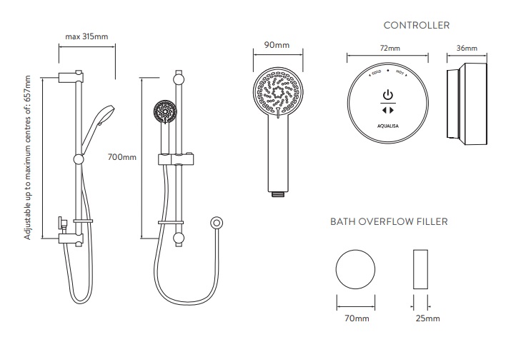 Quartz Blue Concealed Shower with Adjustable Head & Overflow Bath Filler - Standard is available to buy in increments of 1