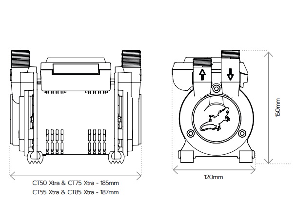 • CT55 Xtra is a 1.5 bar pressure, single ended, positive pump. Suitable for boosting either the hot OR cold water pressure to an individual hot or cold tap, the CT55 Xtra is a hard-working, affordable pump. CT Xtra pumps are only suitable for positive head, gravity fed systems. Installing a CT Xtra pump in a negative head system will mean the pump may not work.