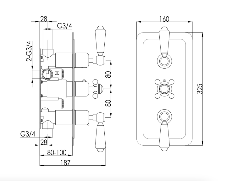 Grosvenor Black, Lever Thermostatic 3 Outlet Shower Valve is available to buy in increments of 1